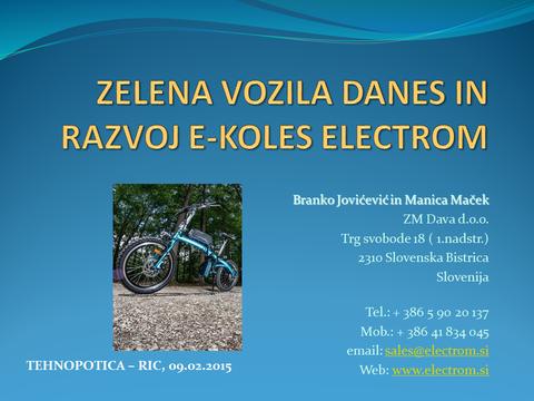 Zelena vozila danes in razvoj e-koles znamke Electrom